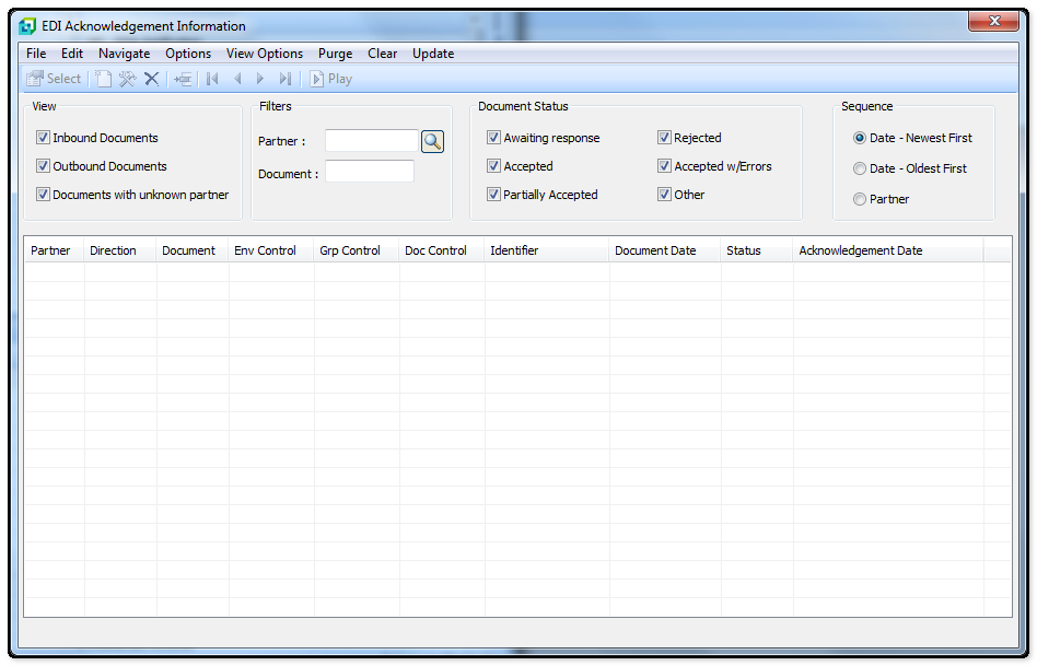 The acknowledgment Date indicates the date the acknowledgment was received or sent.  |