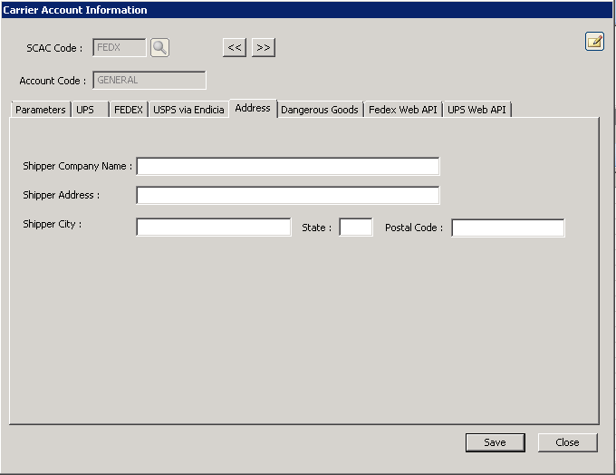 Enter the Shipper's address in the following field's: