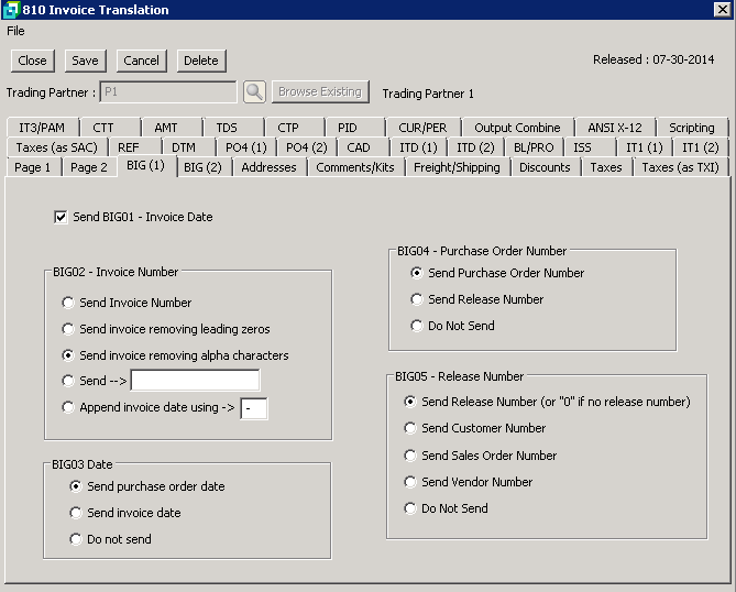 BIG02 - Invoice Number Select to send the full invoice number or end the invoice number with the leading zero's removed. |