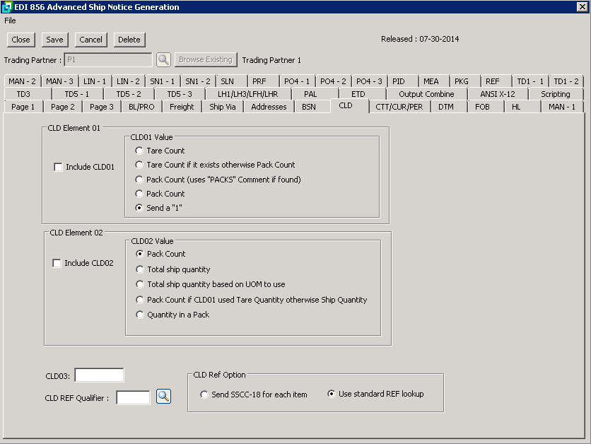 Select to use the total pack count if CLD02 uses Tare Quantity; Otherwise use total ship quantity. |