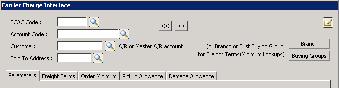 Enter or browse Customers or A/R Branches or Buying Groups and select an A/R Master account, a branch or buying group number. |