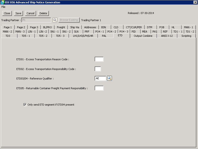 ETD05 - Returnable Container Freight Payment Responsibility: |