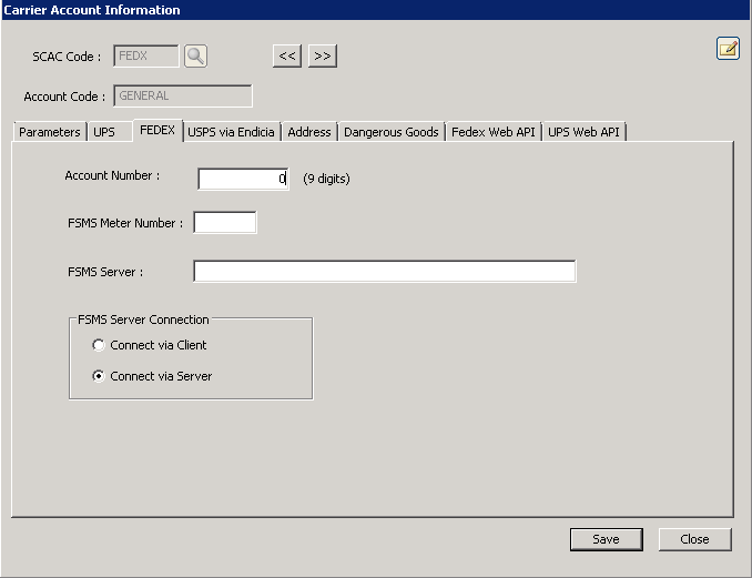 If you are setting up a FedEx account, use this form to define additional account information which is related specifically to the FedEx carrier.