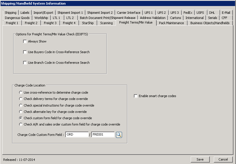 Freight Terms/Min Value Tab