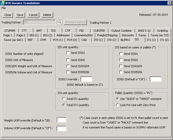 ( * ) Case count is sent unless ISS02 is set to PL then pallet count is sent |