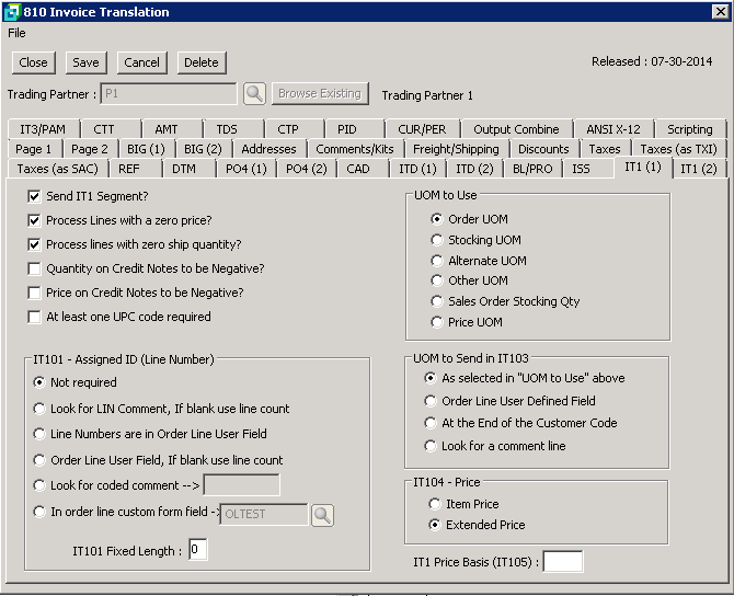 The IT1 form is used to specify line item details, select Product Qualifiers and determine Units of Measure.