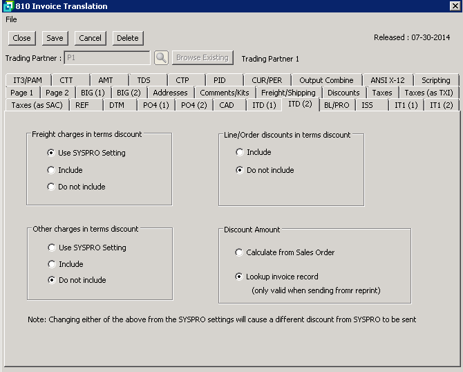 NOTE: Changing either of the above form the SYSPRO settings will cause a different discount from SYSPRO to be sent |