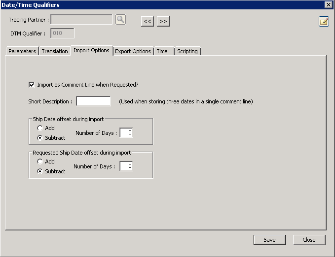 Requested Ship Date offset during import The imported "Requested Ship Date" may be modified by adding or subtracting days during the import process. |