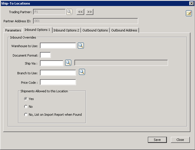 Enter or browse Warehouse and select the warehouse to use for the ship to locations. |