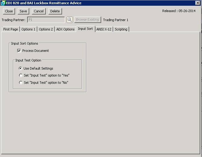 Input Sort, Output File Combine and Acknowledgment Scanner all go together. Input sort is designed to take a combined transmission taken off the VAN or via FTP or AS2 etc. and break it down into the individual documents. Generally this facility will not be used if a package like TPPC is used as the package will break down the transmission. In the file we could have multiple Trading Partners, multiple documents, various document versions, etc.