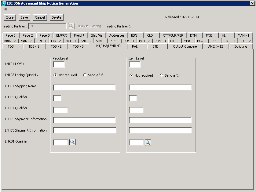 LFH02 Shipment Information: |