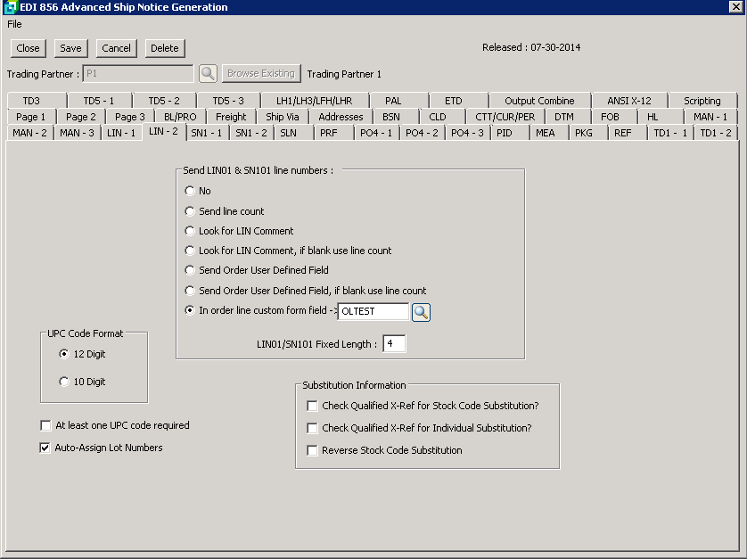 Enter a fixed length for the LIN01 and SN101 elements. |