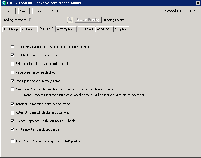 Select for the system to attemp to match the Debits submitted in the 820 document. |