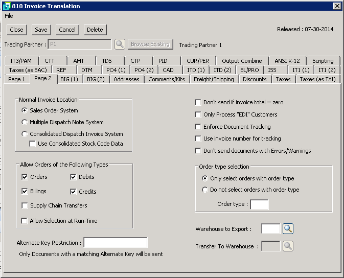 The order type entered here will limit the outgoing 810 to orders of this contained in the Sales Order header. |
