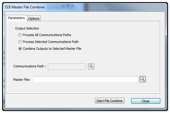 Used in conjunction with the "Combine Outputs to Selected Master File" option. Once this option has been selected, enter the master File path and name required. This will be the Master File crated from all the individual outgoing documents previously run and not yet processed. |