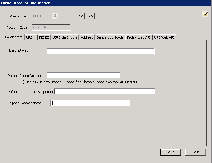 Enter the default phone number for the carrier. This is Used as Customer Phone number if no Phone number is on the A/R Master. |