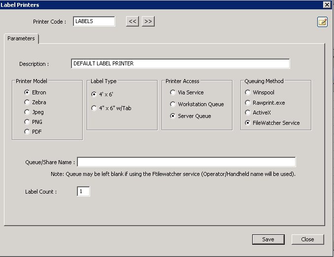Note: Queue may be left blank if using the Filewatcher service (Operator/Handheld name will be used). |