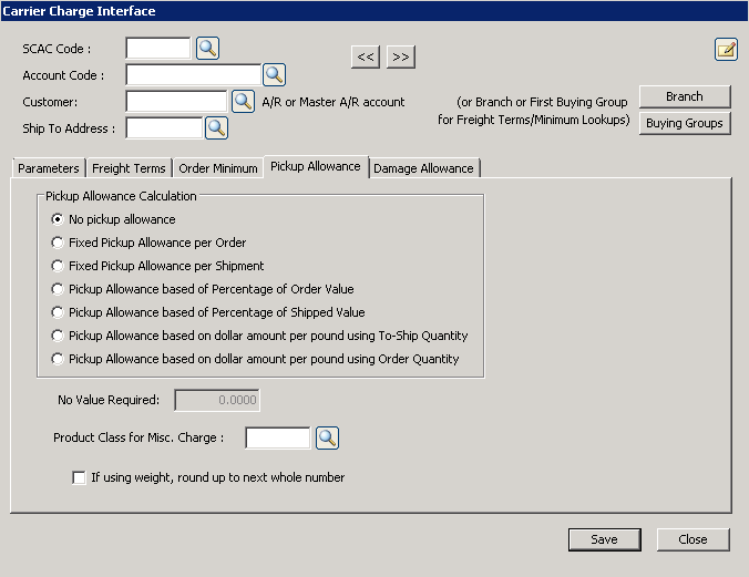 Pickup Allowance Calculation Select the required option for calculating the pickup allowance. |