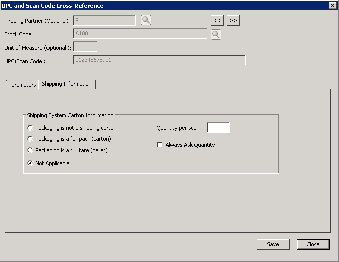 Select if the packaging of the selected stock code is considered individual packaging not designated a shipping carton. |