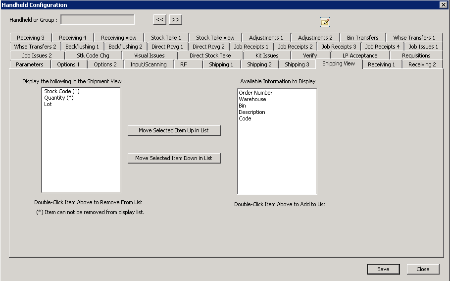 Note: all fields followed by an asterisk (*) MUST be displayed and cannot be removed. Double-click a field name to move from one screen or back to the other.