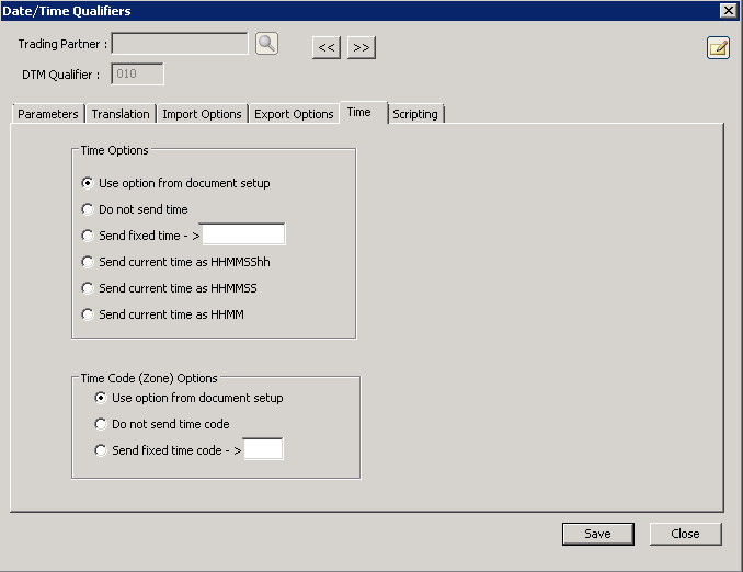 Time Code (Zone) Options