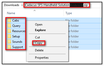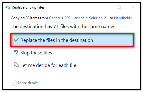 Note 2: for subsequent Handheld WMS updates from Cadacus, simply repeat the above steps and replace/overwrite the existing files in this folder, when prompted, as in the example above.