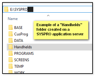Create a folder for the Handheld WMS Solution on the SYSPRO application server