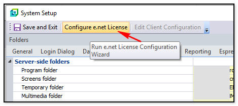 Launch SYSPRO, select Setup > General Setup > System Setup... ,then select "Configure e.net License":