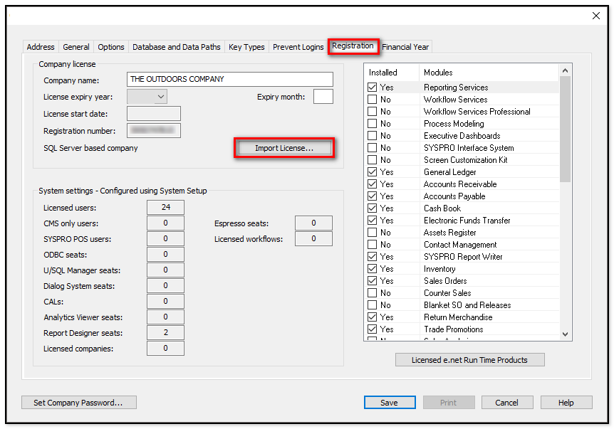 Any time the company license is updated, it is necessary to also follow the steps below to configure SYSPRO e.net licenses; otherwise, the application may receive an error that "the Comstate file is damaged".